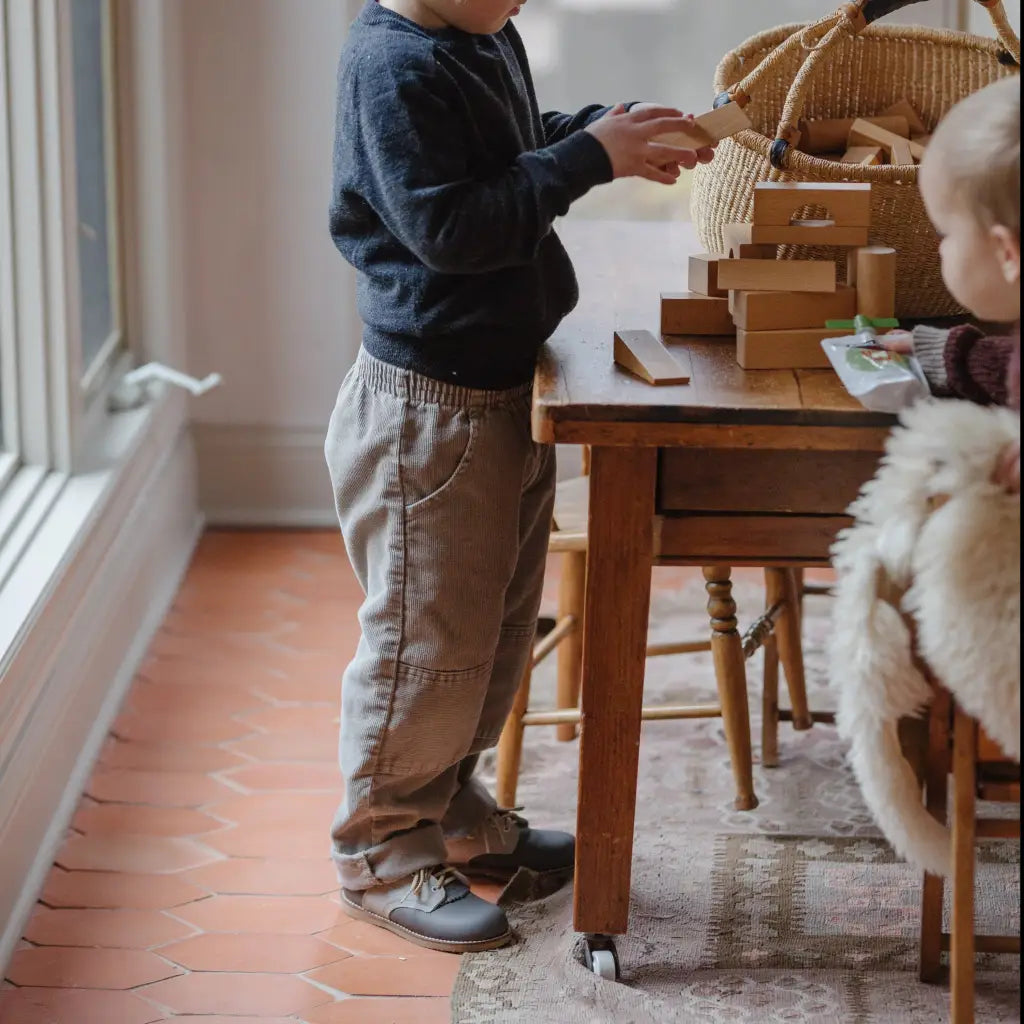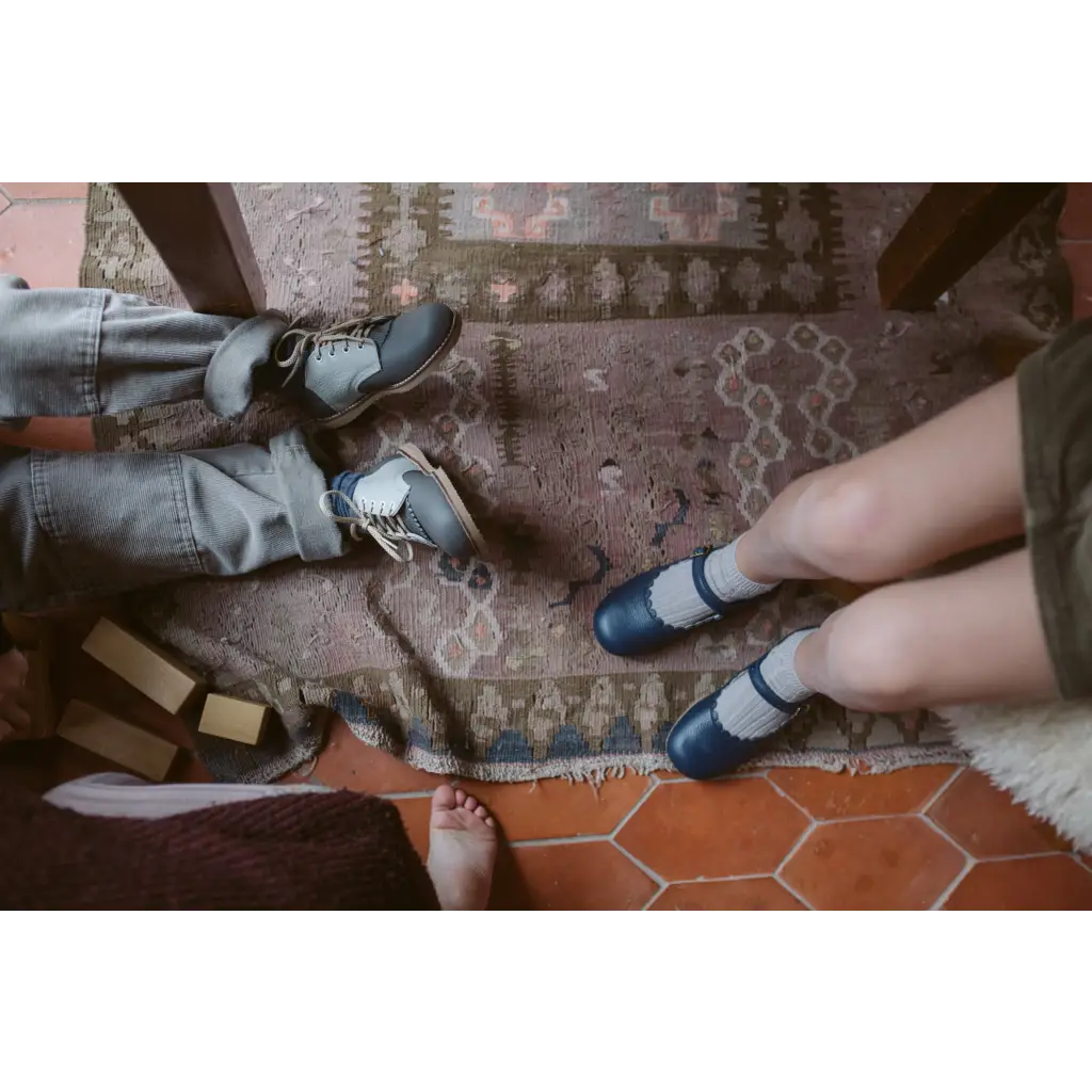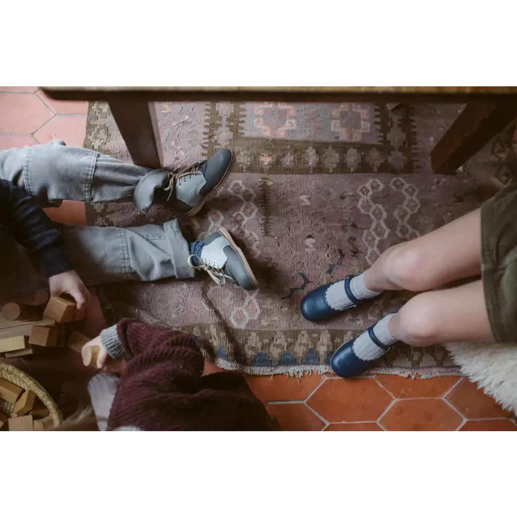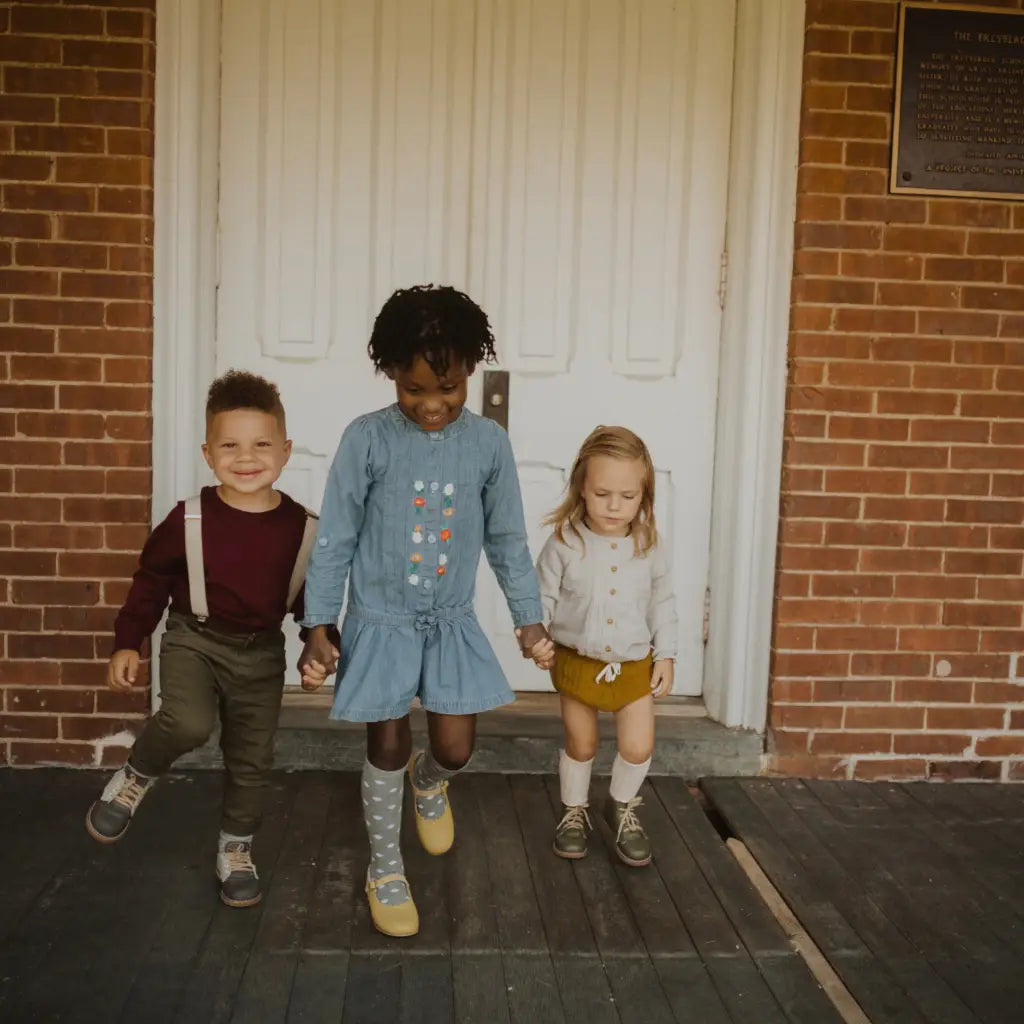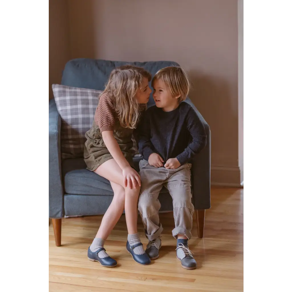 The Artie Saddle in Dark Grey/Dove Grey is made of top grain leather and fully lined in breathable leather to wick away moisture. The combination of a breathable split leather insole and a textured crepe sole make for shoe that's light and flexible while giving your little one lots of traction for exploring.