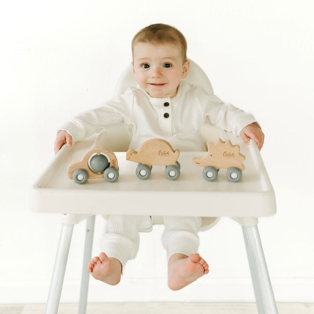 Toys that are fun & help your child developmentally? Yes please! Our silicone & beechwood Rollin’ Friends are sure to spark your little one's imagination while also developing their hand-eye coordination, fine motor skills & creativity! The silicone is soft, yet durable while the beechwood is all natural, won’t splinter & naturally anti-bacterial.