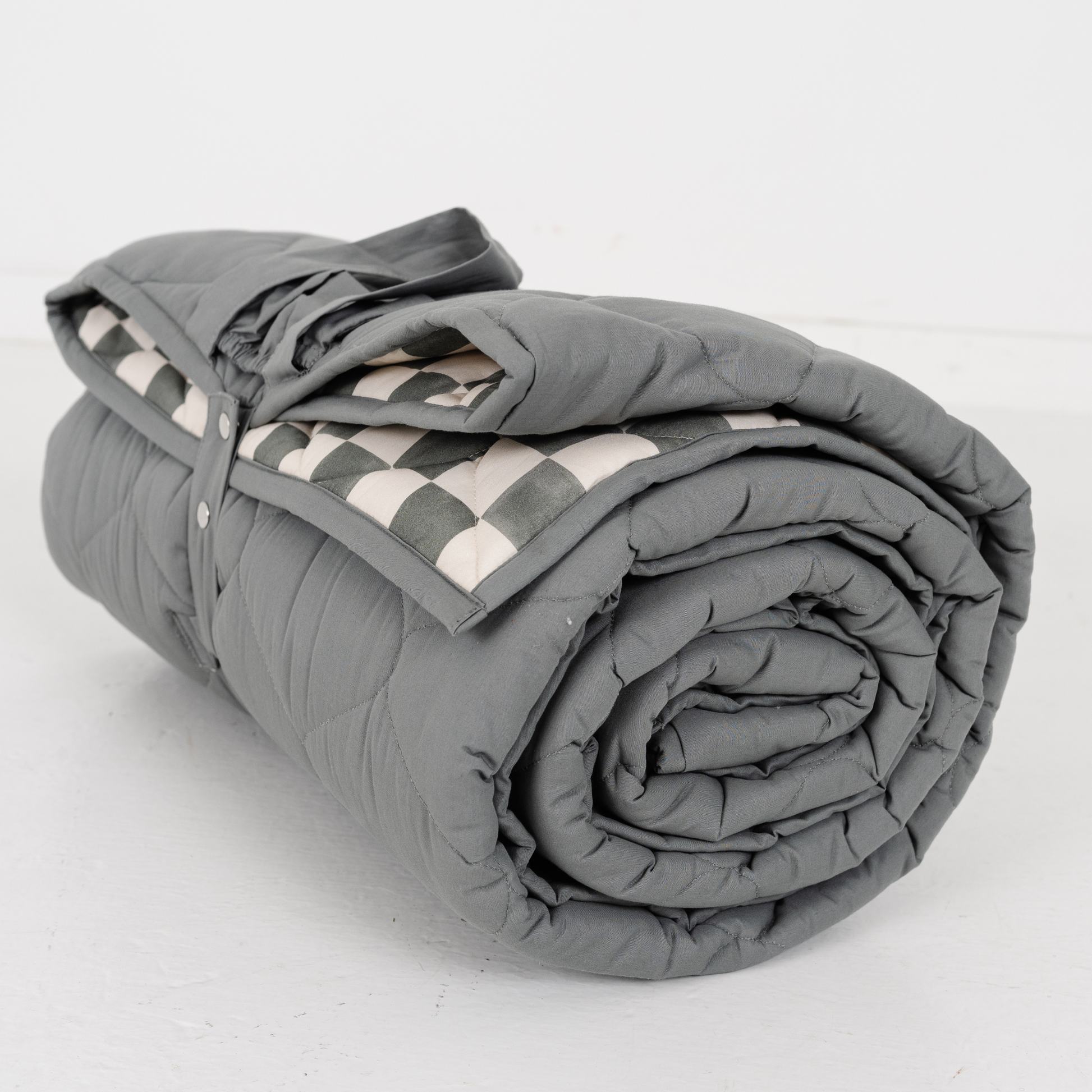 Ready for every family adventure, this roll-up picnic blanket features organic quilted water repellent cotton and a carry handle for comfort and convenience.