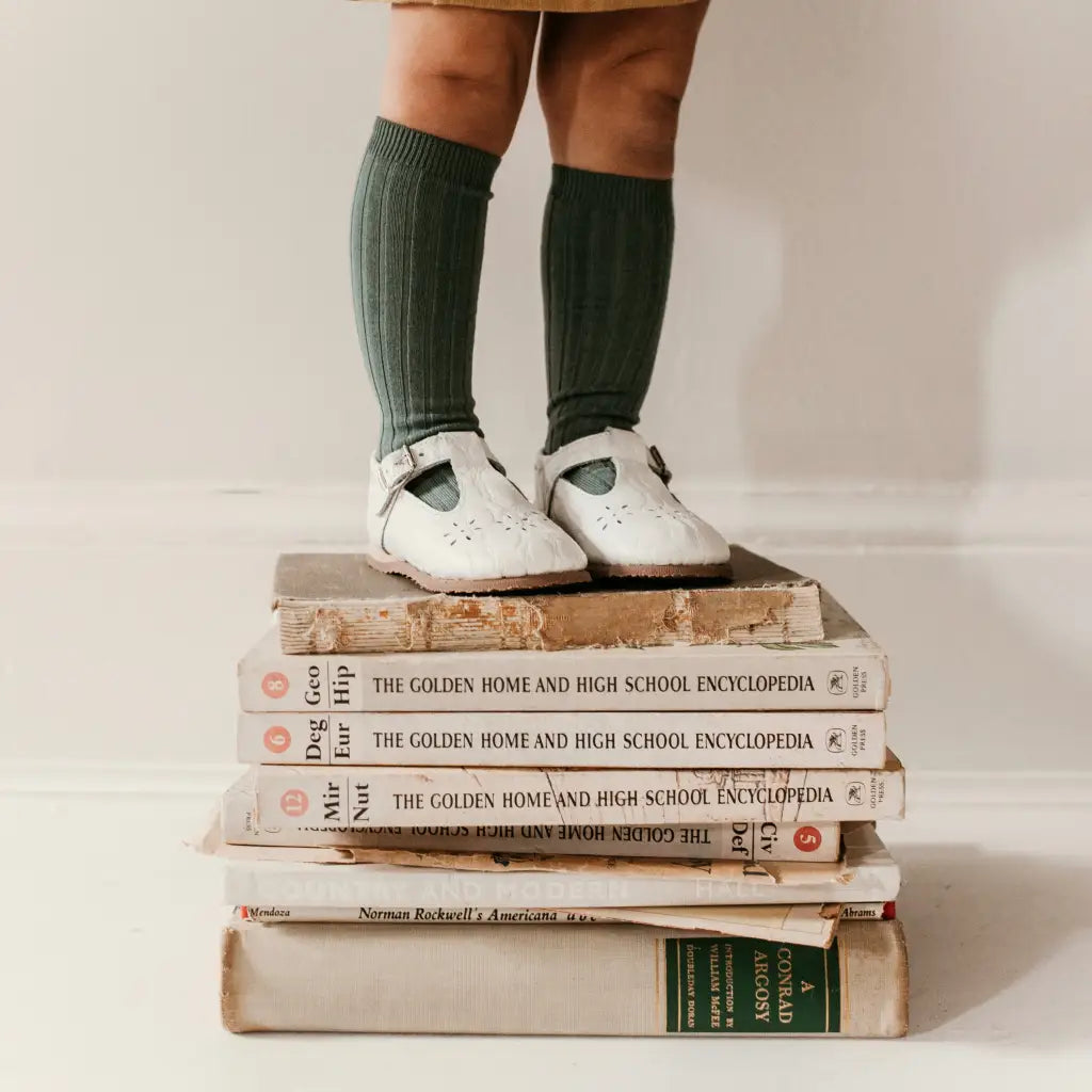 The Flora T-Strap in Ivory Pebble is made of a top grain leather and lined in breathable leather which wicks away moisture. The structure of the shoe and the flexible rubber sole provide stability without weight to support your little one's early steps. We added an adorable flower perforation across the toe and a padded collar around the ankle. Perfect for everyday wear or special occasions.