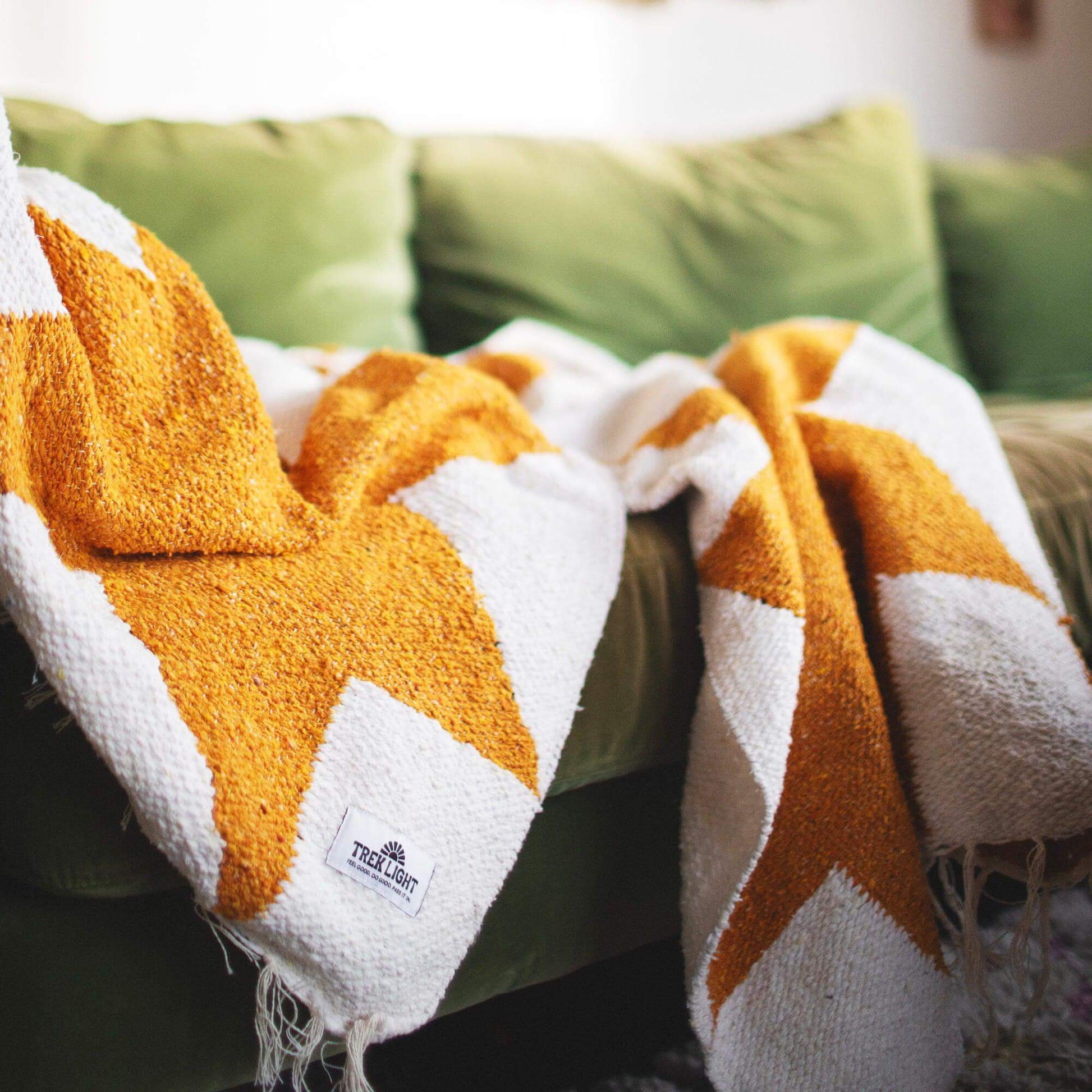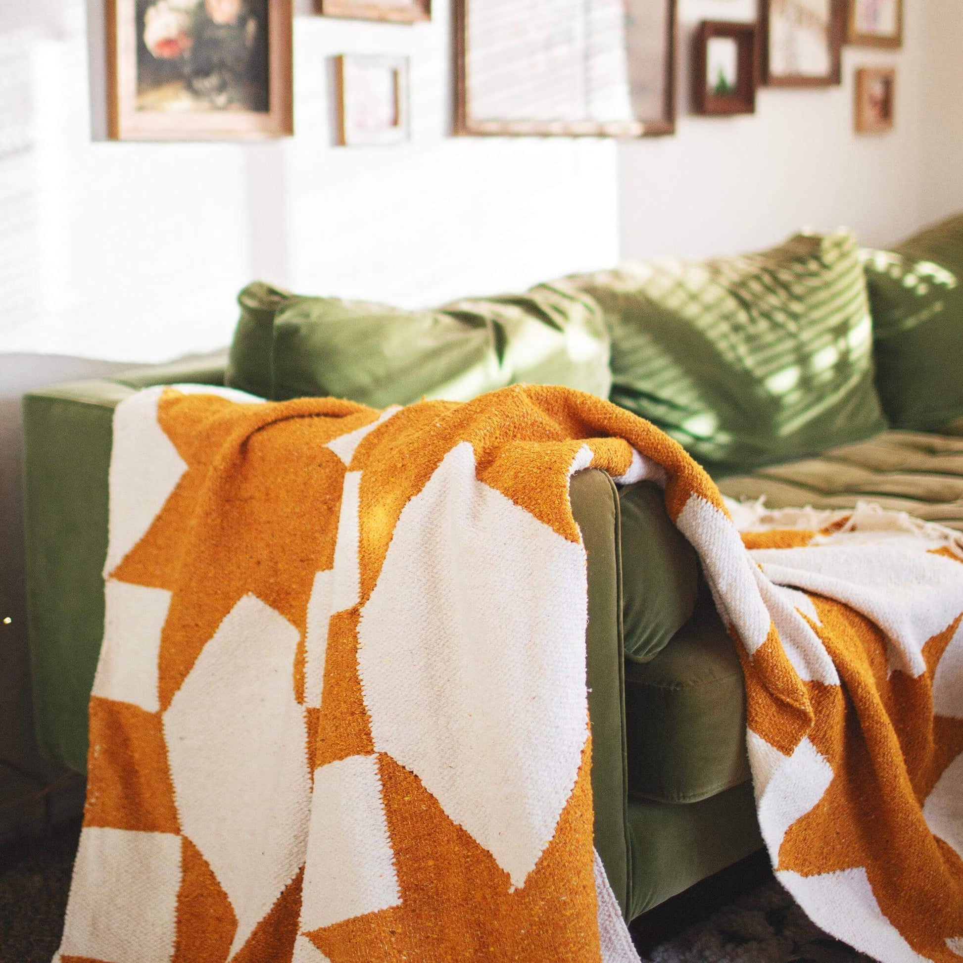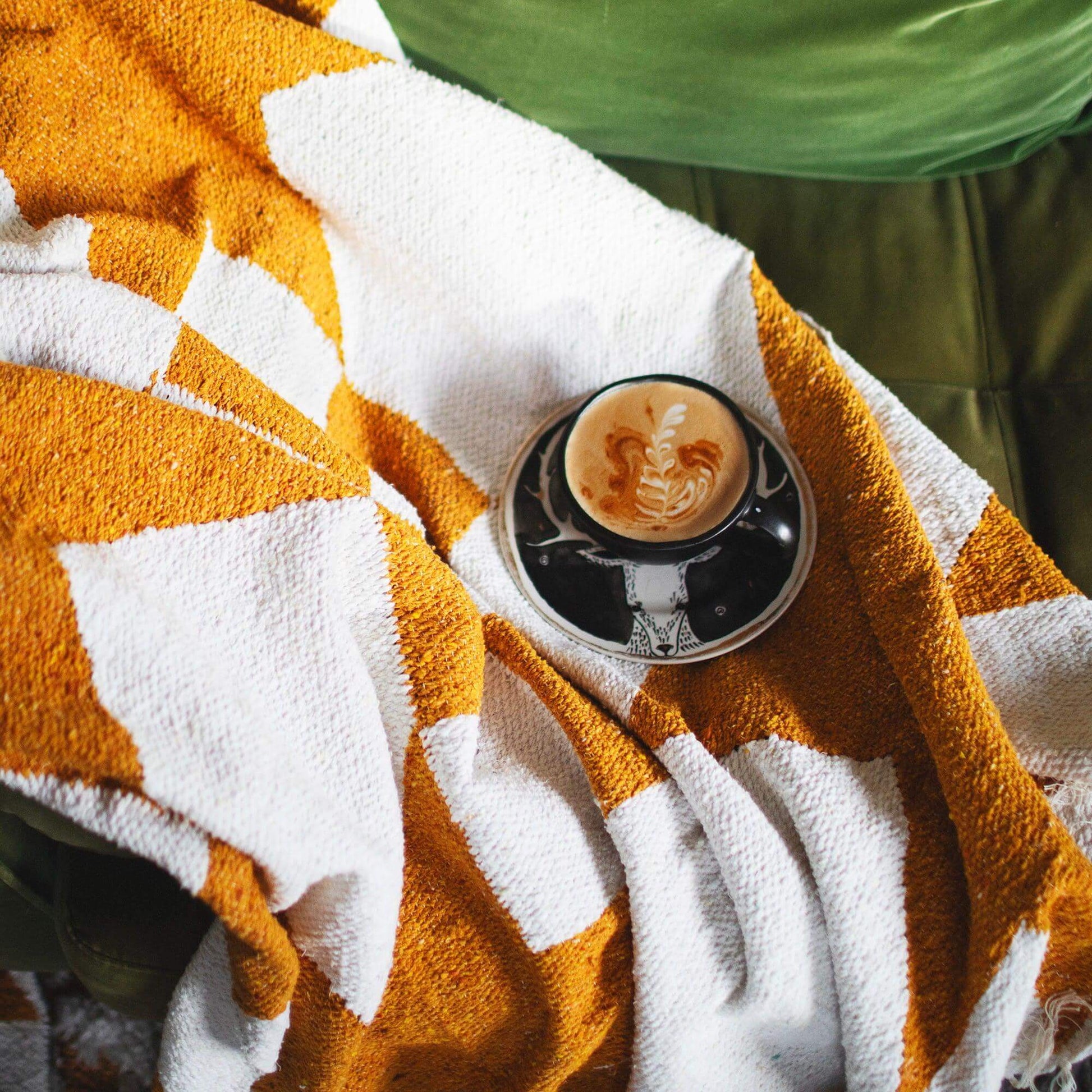 The handwoven, geometric beauty of the Goldie blanket will make you (and your living space) swoon.
