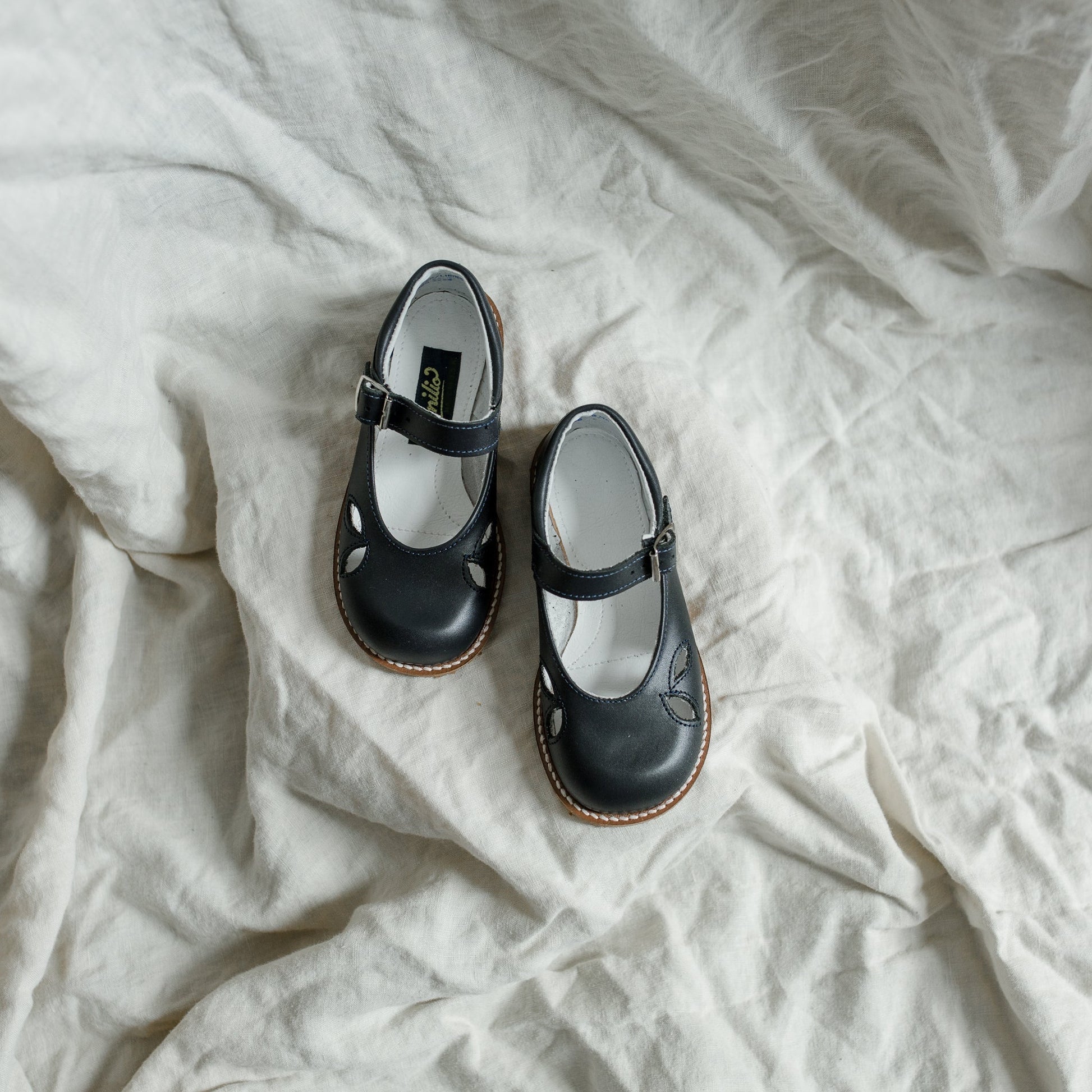 The Josie Mary Jane is made of navy leather and lined with breathable leather and cotton which work together to draw out any moisture. This style features an adjustable ankle strap. The structure of the shoe and the flexible sole provide stability without weight to support your child's early steps. Perfect for everyday wear!