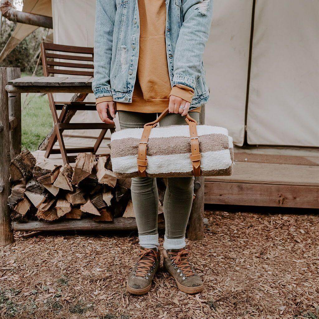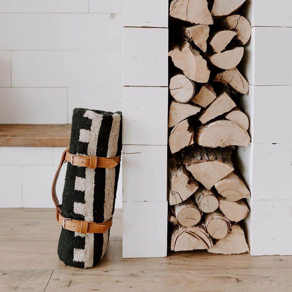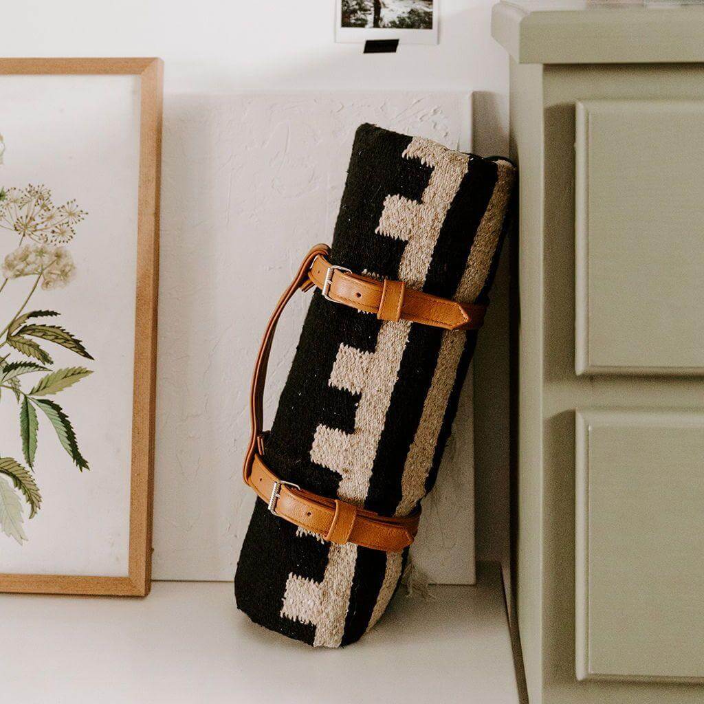 A handcrafted leather carrier made from 100% Reclaimed Genuine leather — designed to turn your favorite blanket into a grab-and-go essential, with style.