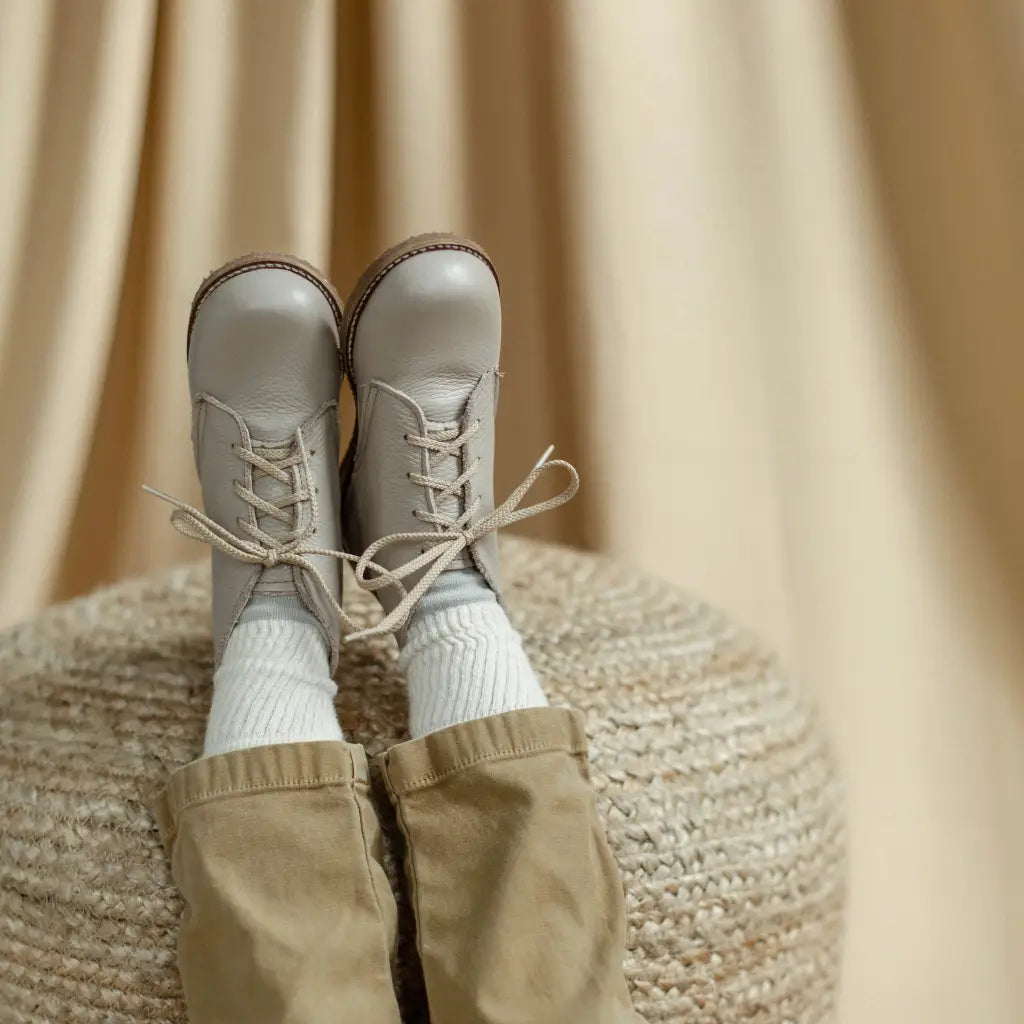 The Sand Milo Boot is made of top grain leather and fully lined in breathable leather to wick away moisture. The sole is made of a durable and flexible rubber, and the structure provides flexible stability without weight to support your little one's early steps. The hand-cut "V" notched out of the back makes slipping them on and off even easier. A favorite for stylish little boys and girls!