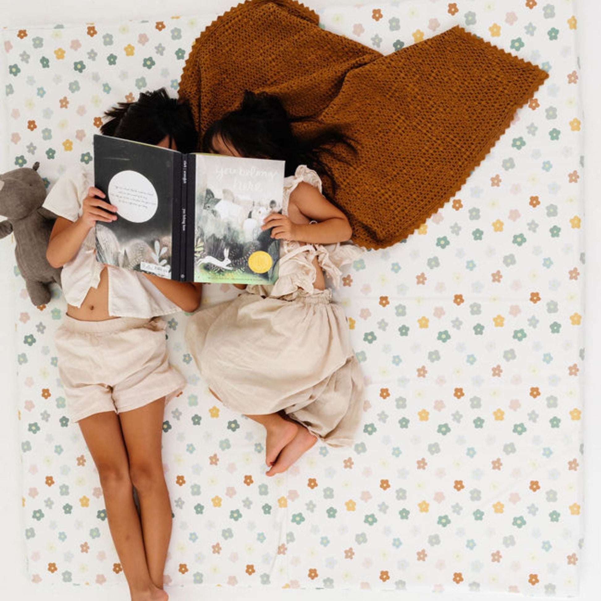 An ultra comfy, mess-proof play mat for tummy time and soft seating inside, outside, or wherever you go.