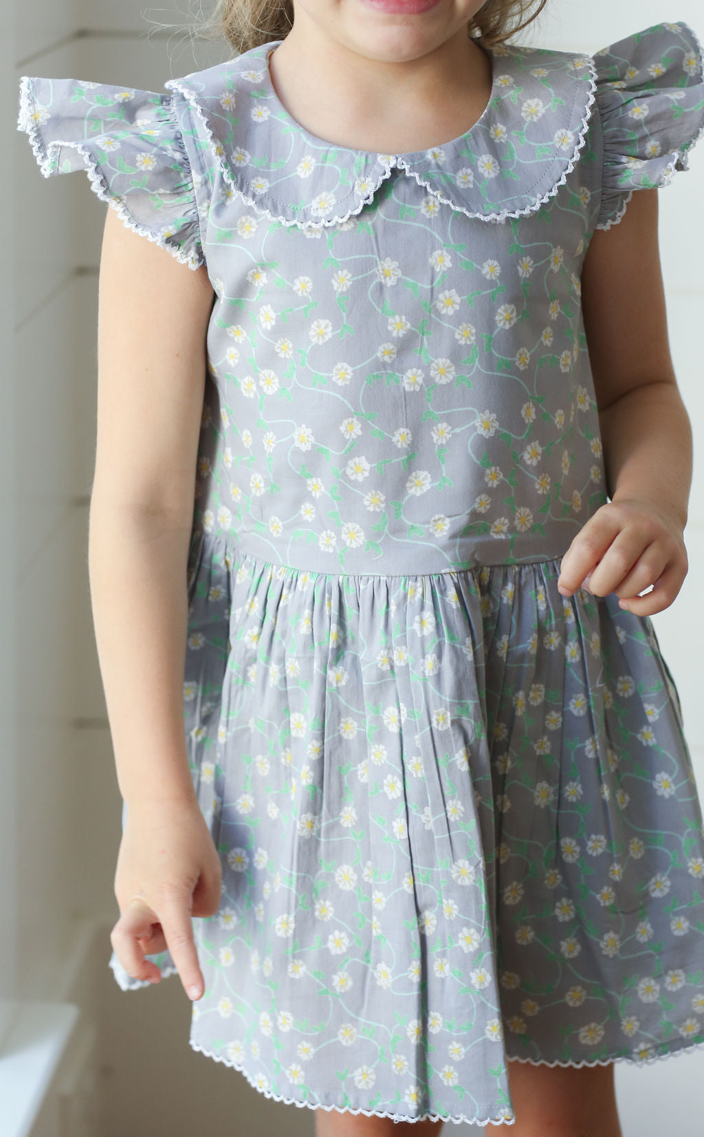 The silhouette and sleeves of the darling Capers dress but with an added peter pan collar. Delicate and oh so sweet!