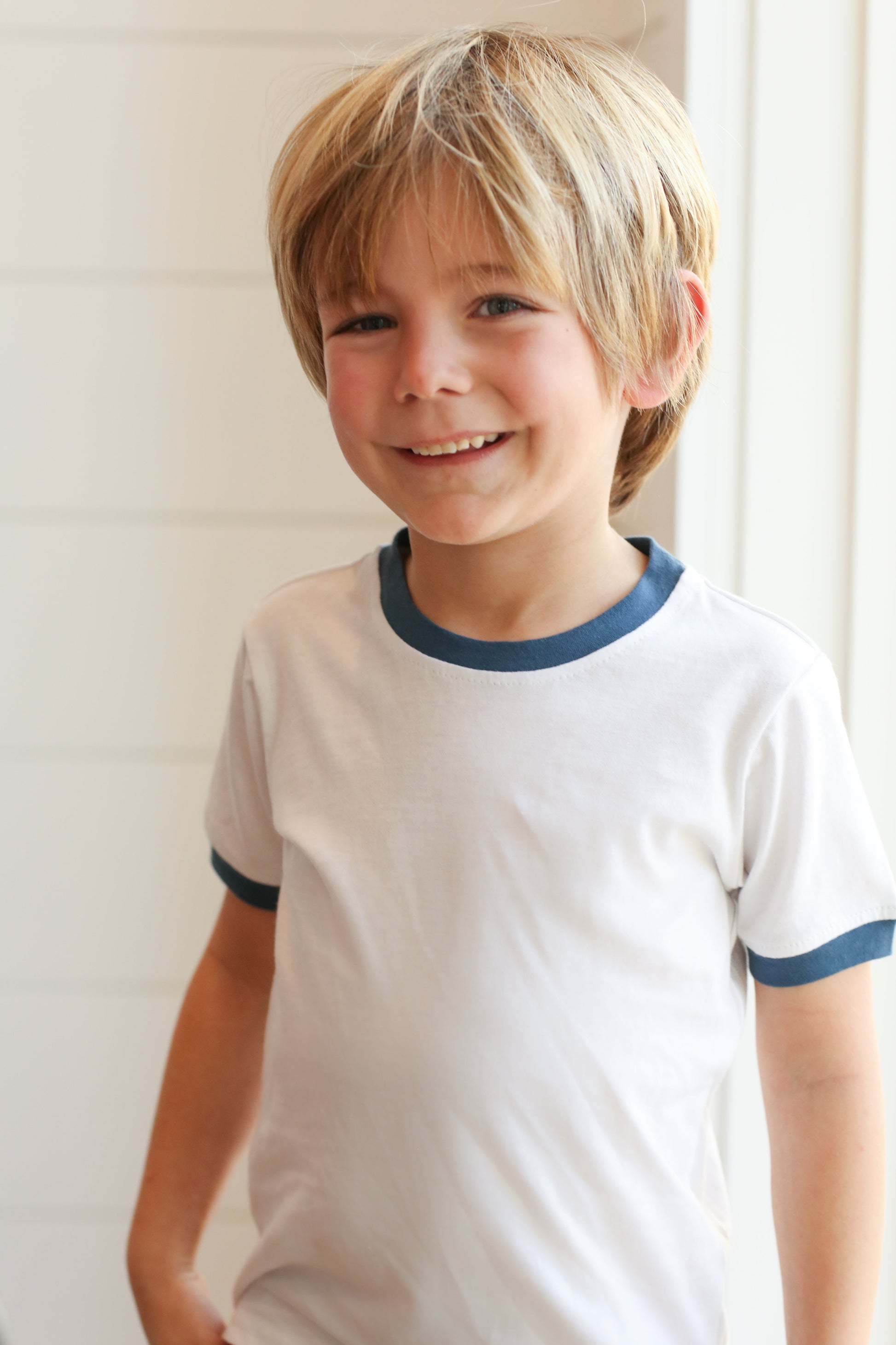 The Ringer Tee is quite possibly the most iconic t-shirt style of the last century. We've updated it with buttery soft pima cotton, blue piping and our hand stitched giraffe (georgie!) on the back for an added touch of whimsy.